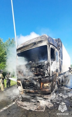 На место происшествия оперативно прибыли пожарные, они потушили кабину грузовика. В ликвидации пожара участвовали 11 спасателей. Прицеп получил незначительные повреждения.