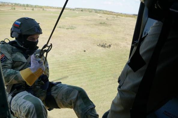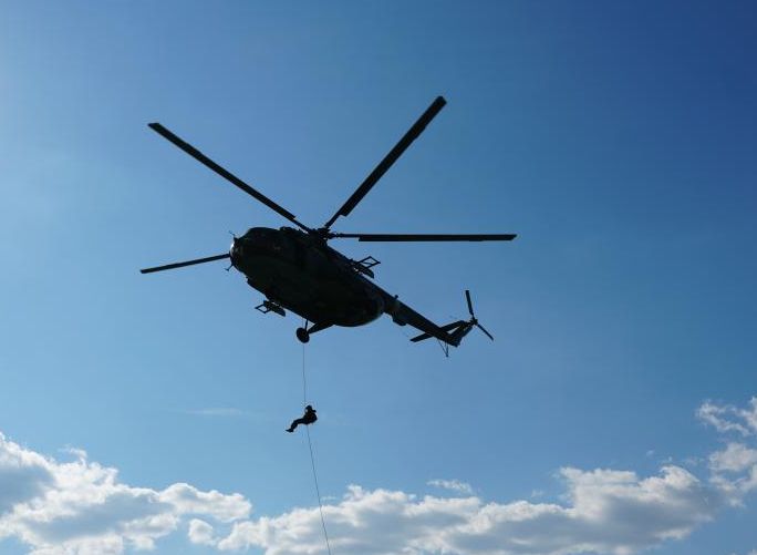 - Бойцы спецподразделений Управления Росгвардии провели специальный инструктаж, тренировку на земле, проверили снаряжение и только после этого приступили к практике в небе. Им предстояло в полной амуниции осуществить спуск по канату и веревке с борта вертолета, зависающего над землей от 10 до 20 метров.