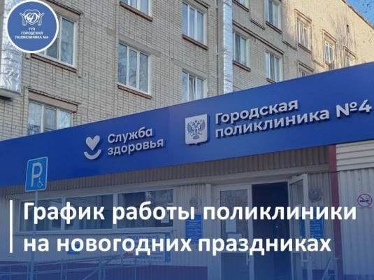 В предпраздничные и праздничные дни график работы городской поликлиники №4 будет следующим: