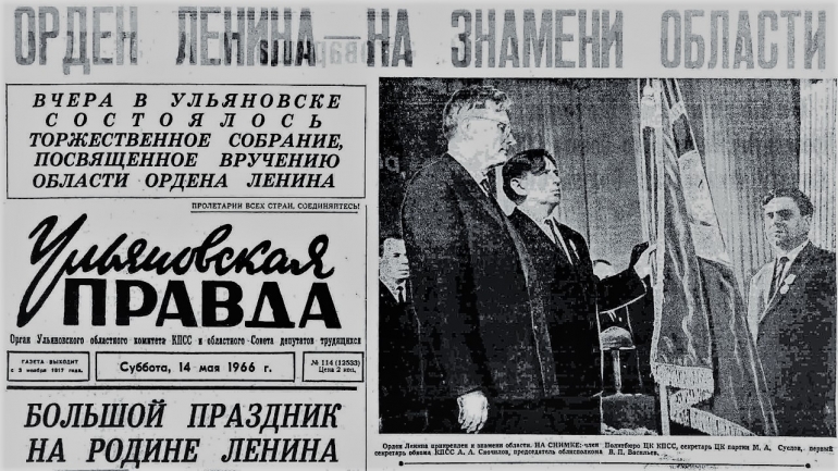 Кстати, 20 апреля 1966 года, накануне 96-летия Владимира Ульянова-Ленина, орденом его имени была награждена Ульяновская область: «за достигнутые успехи в развитии народного хозяйства». И уже 12 мая 1966 года, чтобы вручить области заслуженную награду, в Ульяновск спецпоездом прибыл секретарь и член Политбюро ЦК КПСС Михаил Суслов. А в мае юбилейного 1967 года, в котором Советский Союз широко отмечал 50-летие Октябрьской революции, Орден Ленина получил совхоз имени Надежды Крупской в Мелекессом районе. И, наконец, дошла очередь и до самого Ульяновска.