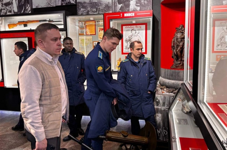В ульяновском выставочном павильоне «Оружие подвига» для курсантов Краснодарского высшего военного авиационного училища летчиков провели экскурсию по экспозиции и прочитали познавательную лекцию.