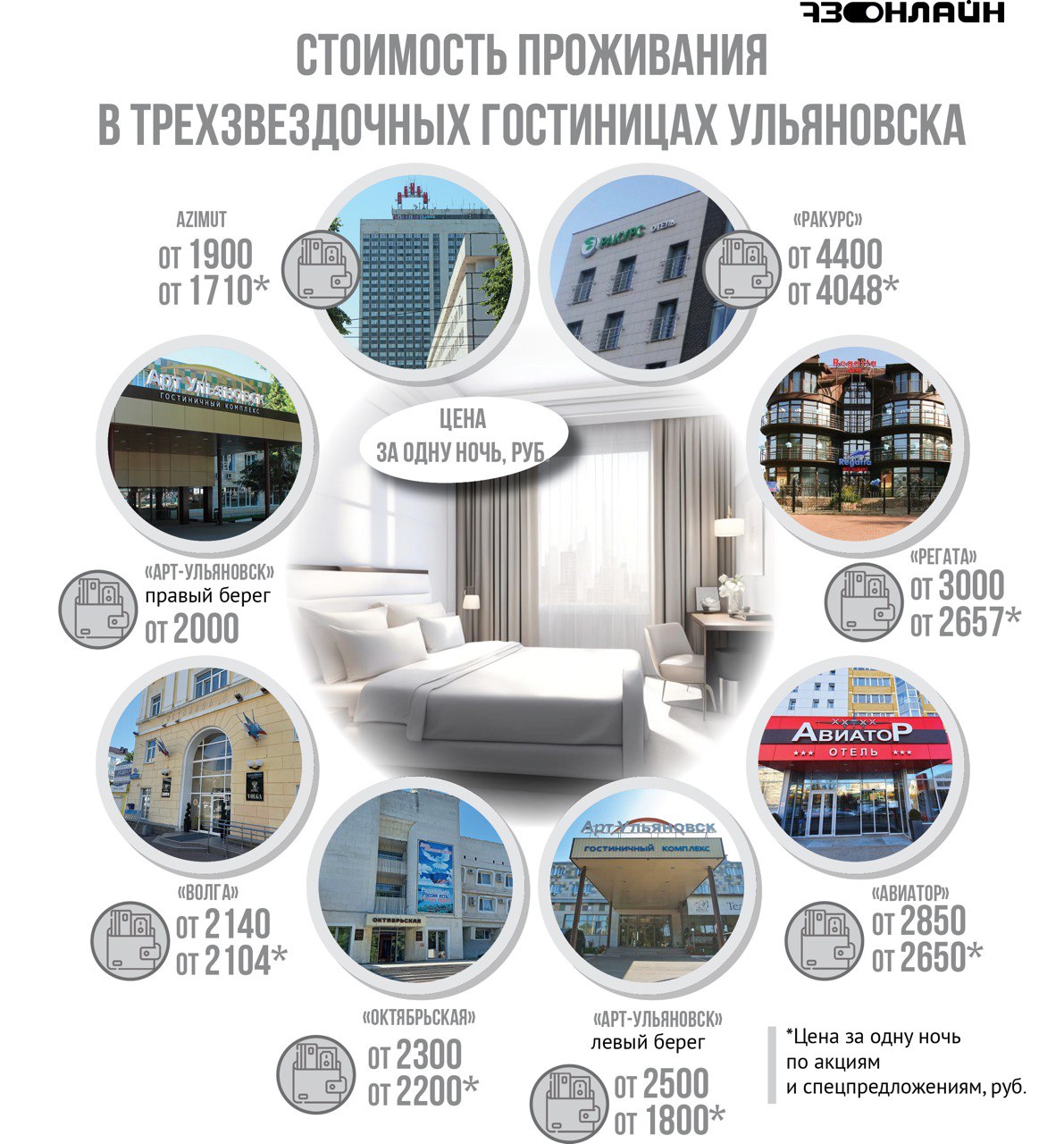 73online.ru составил инфографику с ценами* в трехзвездочных гостиницах Ульяновска.