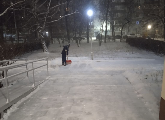 Большинство дворников начали убирать снег с придомовых тротуаров и входных групп с 4:00 - 5:00. В шесть утра к ним присоединились 23 трактора, а с 8:00, когда парковочные площадки освободились от машин, их количество увеличилось до 80.