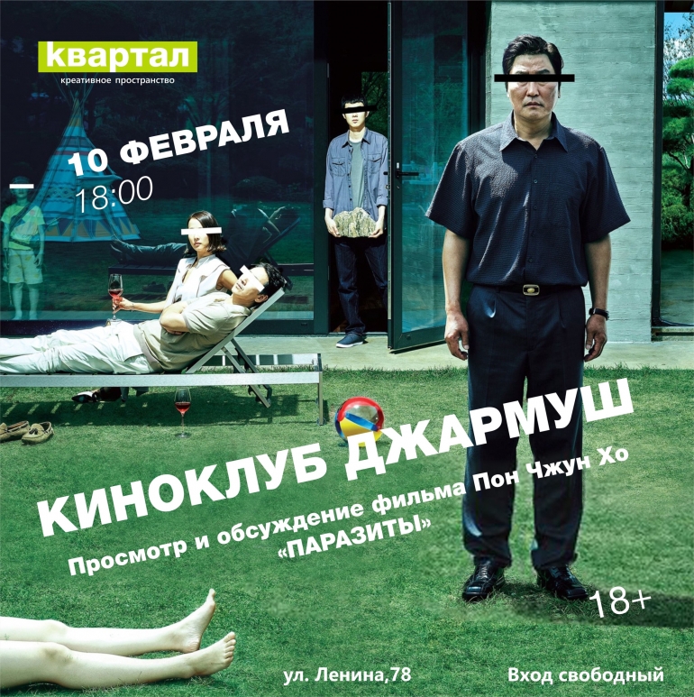 10 февраля в 18.00 в «Квартале» состоится просмотр и обсуждение фильма Пон Джун-хо «Паразиты». Обычное корейское семейство Кимов жизнь не балует. Приходится жить в сыром грязном полуподвале, воровать интернет у соседей и перебиваться случайными подработками. Однажды друг сына семейства, уезжая на стажировку за границу, предлагает тому заменить его и поработать репетитором у старшеклассницы в богатой семье Пак. Подделав диплом о высшем образовании, парень отправляется в шикарный дизайнерский особняк и производит на хозяйку дома хорошее впечатление. Тут же ему в голову приходит необычный план по трудоустройству сестры.