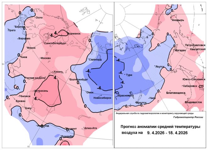 Свежие данные Гидрометцентра России подтверждают: регион накрывает волна тепла. На прогностических картах аномалий (период до 18 апреля) Поволжье окрашено в уверенный розовый цвет.