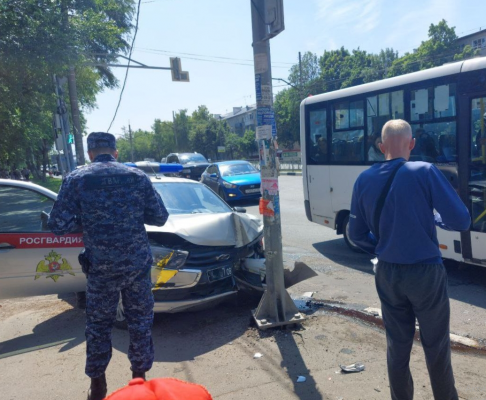 По словам свидетелей происшествия, на остановке «улица Мичурина» патрульный автомобиль росгвардейцев врезался в столб, на котором размещён знак «Остановка запрещена».
