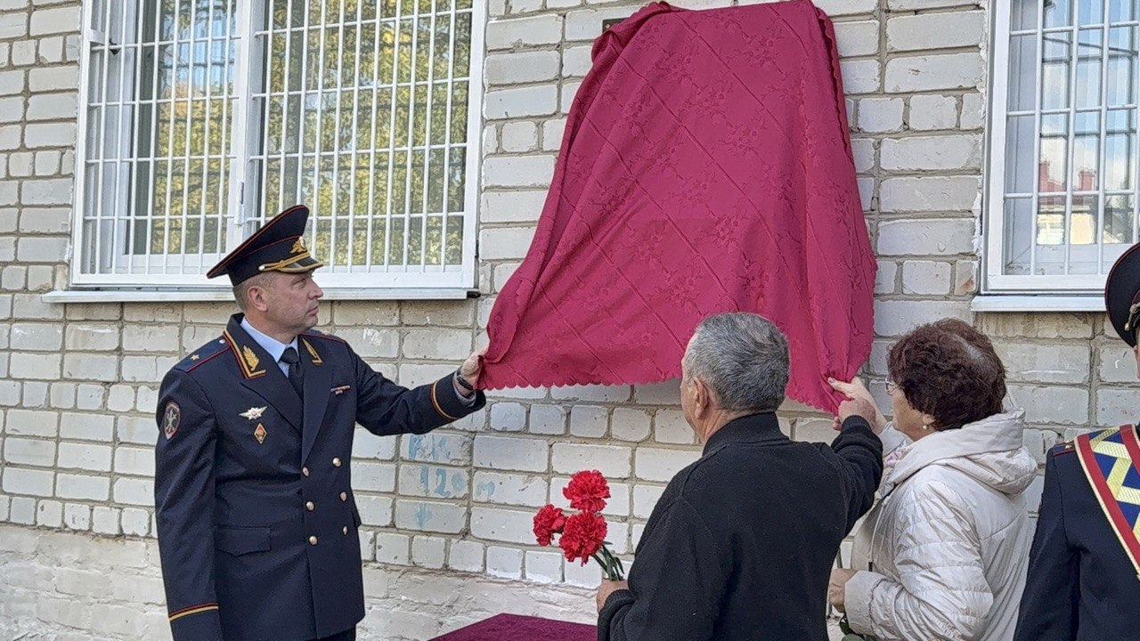 Торжественно открыли мемориальную доску глава регионального УМВД генерал-майор полиции Максим Петрушин и родители героя - отец Александр Леонидович и мать Любовь Михайловна.