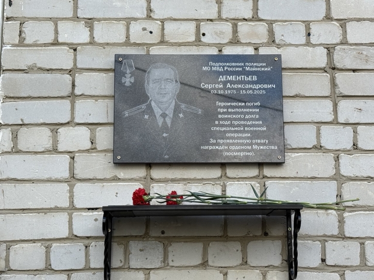 Сегодня, 7 октября, состоялся митинг, посвященный открытию памятной мемориальной доски ветерану органов внутренних дел подполковнику полиции в отставке Сергею Дементьеву, погибшему в ходе проведения специальной военной операции. Памятную доску установили на фасаде здания межмуниципального отдела МВД России «Майнский».