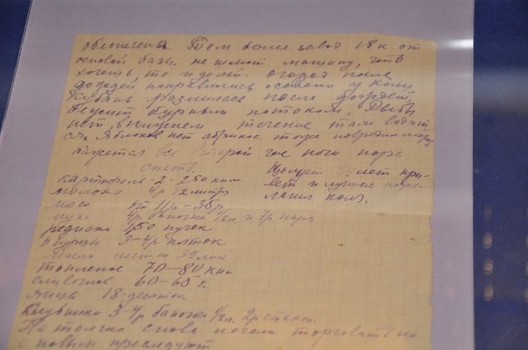 «… Живу я здесь вторые сутки и очень скромно - … бульон без мяса и жаркое – около двух рублей, а если захочешь рыбы, так и за три перевалит. Вчера, например, я освободился пораньше и обедал в 7 часов. Взял рыбную солянку, жаркое и квасу. Заплатил 4 рубля, прямо бешеные цены, и уже, поэтому можно судить, что война долго не продлится… »