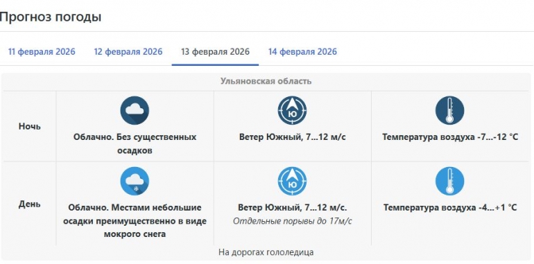 Так, в дневные часы 13 февраля температура воздуха будет составлять -4...+1 °C.