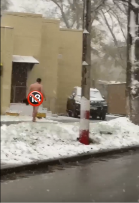 Сегодня, 2 ноября, в Железнодорожном районе Ульяновска заметили абсолютно голого мужчину: несмотря на снегопад он разгуливал по улице в чём мать родила.