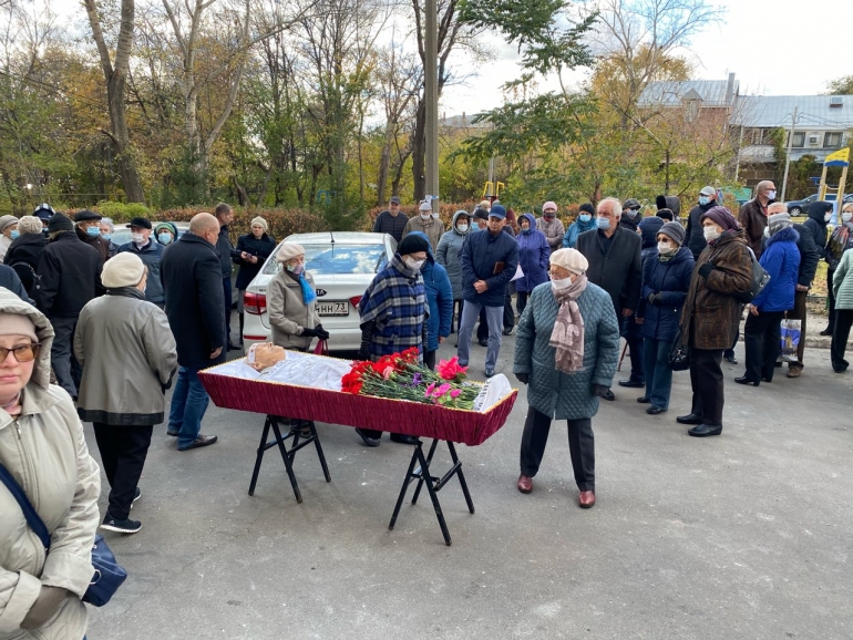 Сегодня проводить Александра Марьева в последний путь пришли близкие друзья и сослуживцы. Прощание было скромным, возле подъезда. Никаких оркестров и пышных церемоний. Только около сотни человек, которым Марьев в свое время помог и добрым словом, и делом.