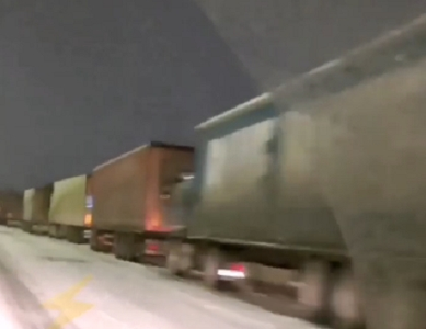 На подъезде к городу, у Димитровградского шоссе, скопились десятки большегрузов.
