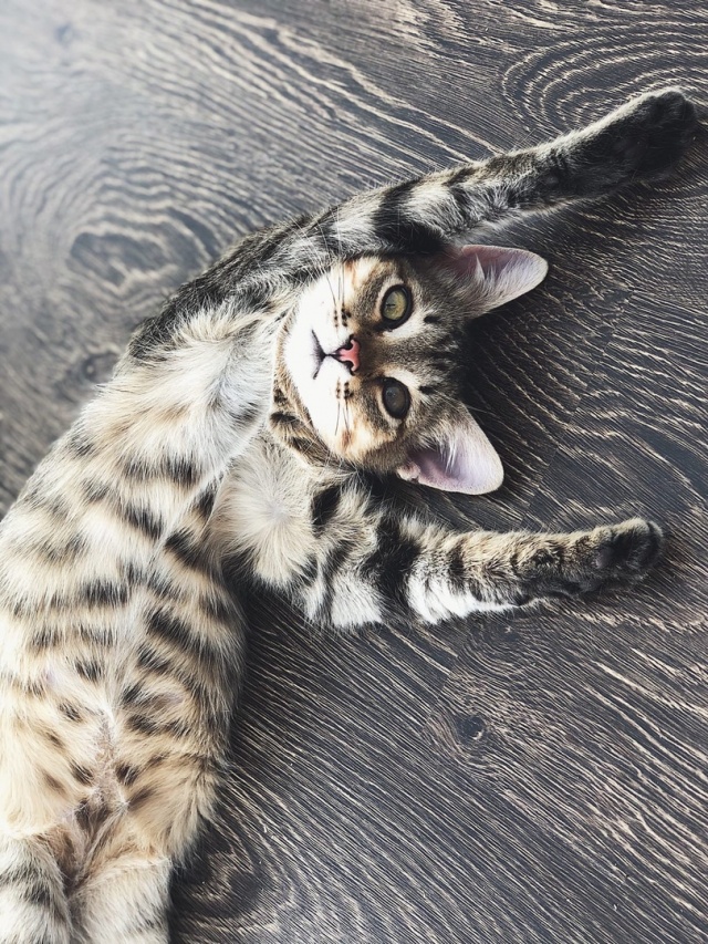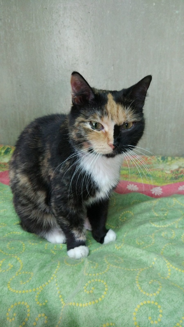 Была спасена с улицы. Чиста, обработана, привита, стерильна. Долго всего боялась. Но теперь оттаяла, играет и ласкается. Очень интересный окрас. Сама по себе маленькая, словно котёнок. Отдаётся совершеннолетними людям в квартирное содержание с условием весточек из нового дома.