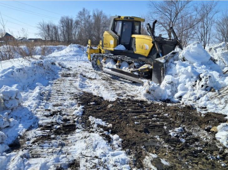 По решению главы города Александра Болдакина для созданию обводного канала вдоль улицы Берёзовой села Луговое в Ульяновске задействовали гусеничный бульдозер и экскаватор TEREX.