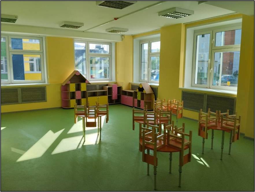 В новом здании будет организован второй корпус детского сада №141 «Изюминка», рассчитанный на восемь групп. На первом этаже разместится ясельная группа для малышей от года – для неё предусмотрен отдельный вход и закрытая тёплая колясочная.