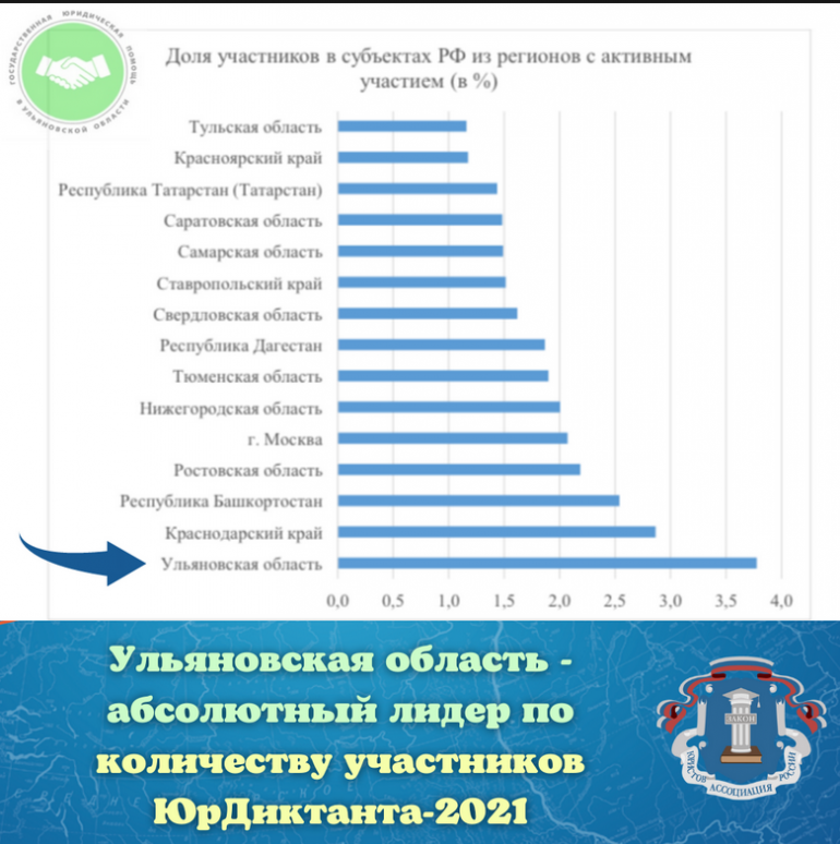 Подвели итоги V Всероссийского правового (юридического) диктанта. Ульяновская область стала абсолютным лидером по количеству участников.