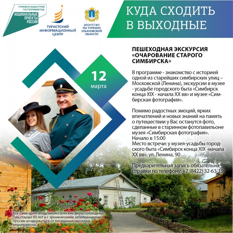 Пешеходная экскурсия «Очарование старого Симбирска». Начало в 15:00. Место встречи: у музея-усадьбы городского быта «Симбирск конца XIX -начала XX вв», ул. Ленина, 90.