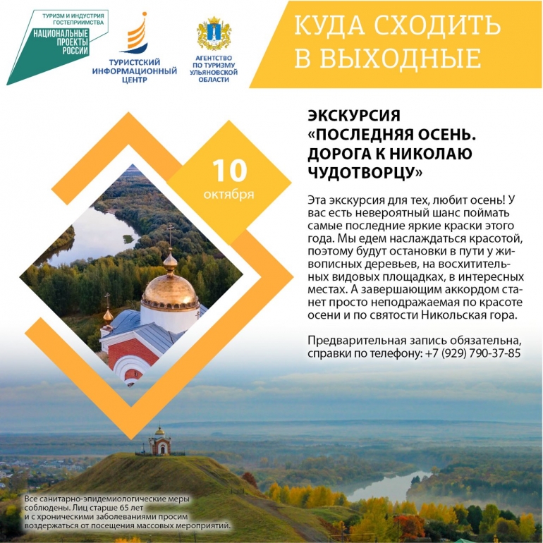 Эта экскурсия для тех, любит осень! У вас есть невероятный шанс поймать самые последние яркие краски этого года. Мы едем наслаждаться красотой, поэтому будут остановки в пути у живописных деревьев, на восхитительных видовых площадках, в интересных местах. А завершающим аккордом станет просто неподражаемая по красоте осени и по святости Никольская гора.