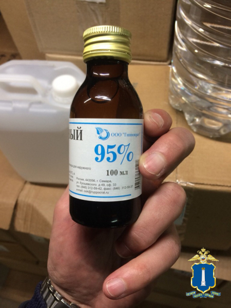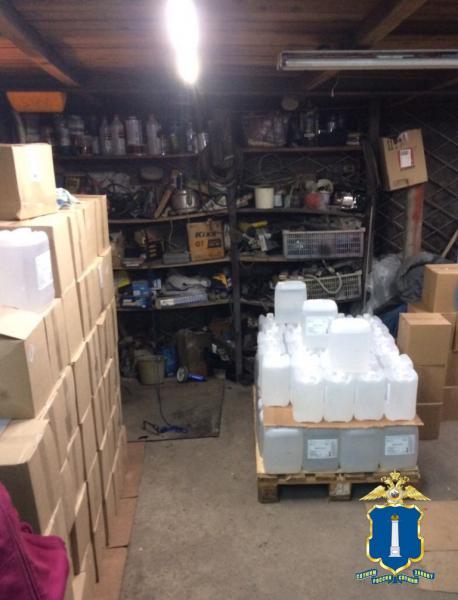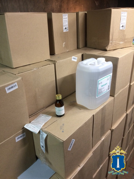 На складе сотрудники полиции обнаружили и изъяли 97 емкостей этилового спирта объемом 5 литров, 3550 флаконов по 100 мл спирта этилового 95%, два вида спиртосодержащей жидкости в емкостях по 100 мл в количестве 5450 штук и 4750 штук. В результате проверки из незаконного оборота изъята спиртосодержащая продукция объемом 1860 литров.