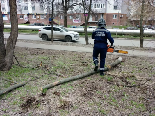 В воскресенье спасатели Управления гражданской защиты раскряжевали дерево, сломанное ветром на улице Островского, 21.