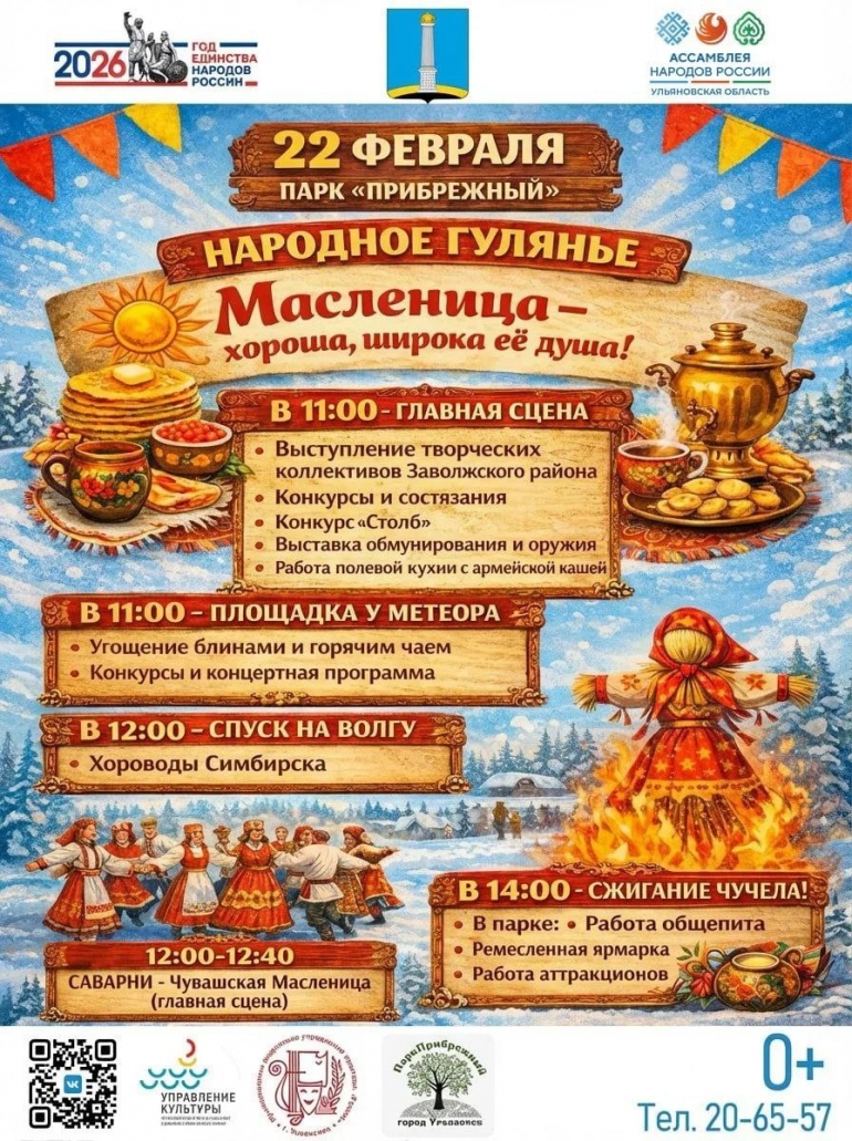 В парке «Прибрежный», который находится в Заволжском районе Ульяновска, 22 февраля в 11:00 начнут отмечать масленицу и прощаться с Зимушкой-зимой.