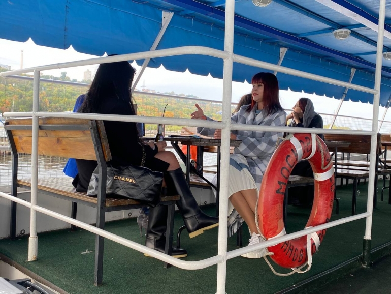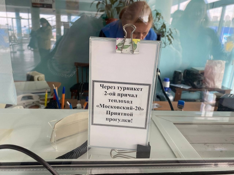 В программе события была анонсирована часовая прогулка на теплоходе по Волге с фотосессией, а затем показ коллекции в здании Речного порта. Гости начали подходить за полчаса до начала и покупать билеты. Прокатиться на судне «Московский-20» стоит 400 рублей. Ирина Малова переживает: «На пароходике волнуются, что никто не подходит!».