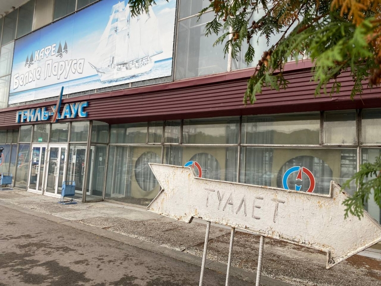 Основательница бренда Kuzina объяснила выбор площадки так: осенне-зимняя коллекция вдохновлена воспоминаниями о советском детстве, поэтому локацией для презентации выбрали речной вокзал «с безграничными видами на Волгу, теплоходами и легкой, беззаботной атмосферой мечты и свободы». Не знаю, как насчет мечты и свободы, но советского здесь точно много — само здание выглядит как памятник прошлой эпохе.
