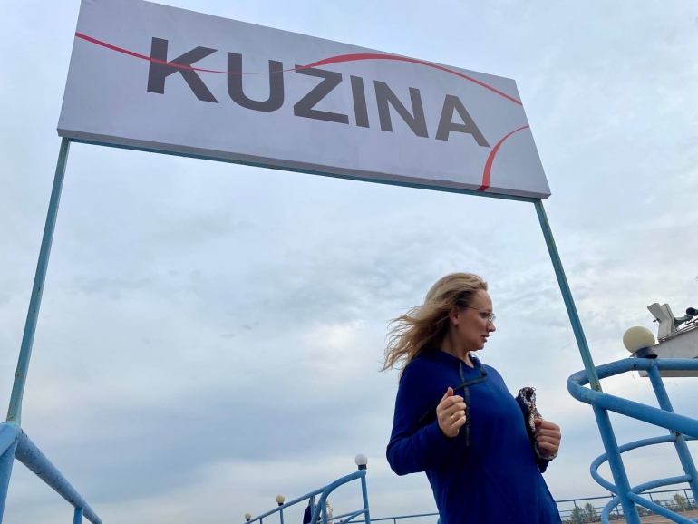 Дизайнер и основатель бренда женской одежды Kuzina Ирина Малова представила новую осенне-зимнюю коллекцию, вдохновленную советским детством, «когда облизывали железные горки и катались на качелях». Началось все со скучной, малолюдной и не многообещающей речной прогулки на теплоходе, но завершилось по-настоящему смело, ярко и красиво! Модели прошлись в неординарных нарядах с эксцентричными украшениями, дерзко позируя перед камерами.