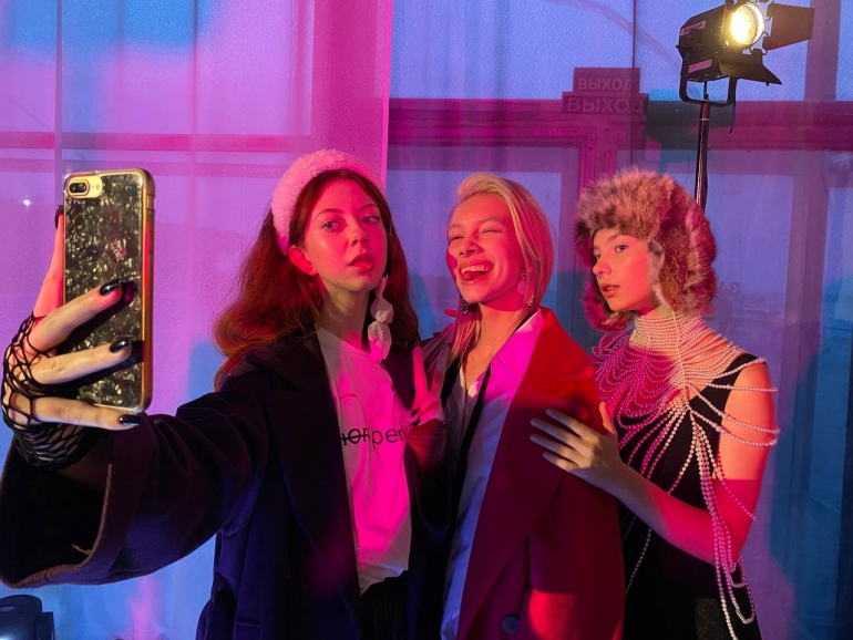 Визажист Дарья Филиппкина выбрала наряд барби-розового цвета, Юлия Шулепова — яркий зеленый. Алиса Богатова - в леопарде, Татьяна Снежкина - в джинсе.