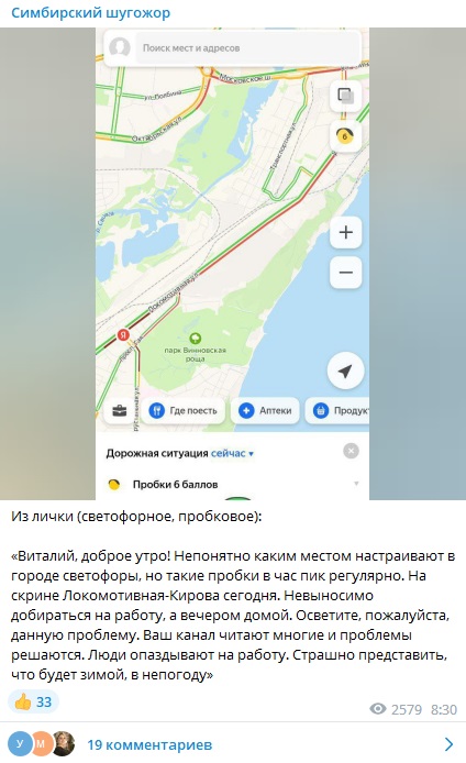 Недовольство вызывает настройка светофоров на улице Локомотивной: на перекрестках с переулком Хрустальным и проспектом Гая утром и вечером образуются большие пробки. Обещанная горожанам «зеленая волна» пока не настроена, водители подолгу стоят на красном сигнале. Также автолюбители опасаются, что ситуация усугубится после того, как выпадет снег.