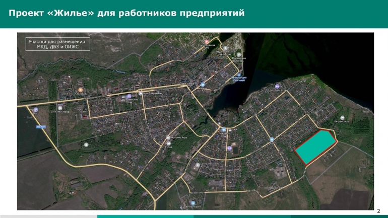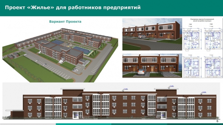 Проведенный среди работников опрос показал, что 193 человека нуждаются в улучшении жилищных условий. На основе полученных данных разработан проект строительства трех многоквартирных домов на 98 квартир, 40 домов блокированной застройки и 55 индивидуальных жилых домов.
