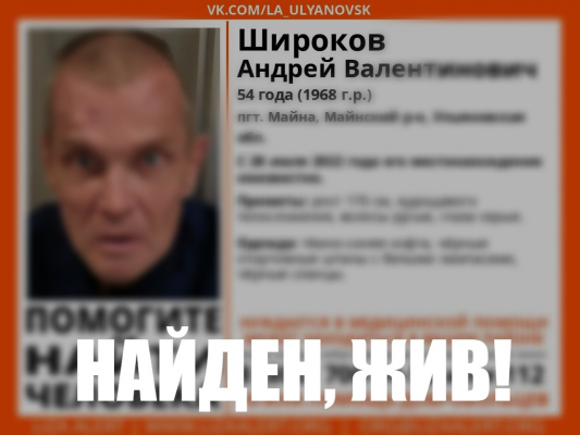 Портал 73онлайн писал, что в Ульяновской области 28 июля пропал 54-летний житель рабочего поселка Майна. Сегодня, 31 июля, стало известно, что его нашли.