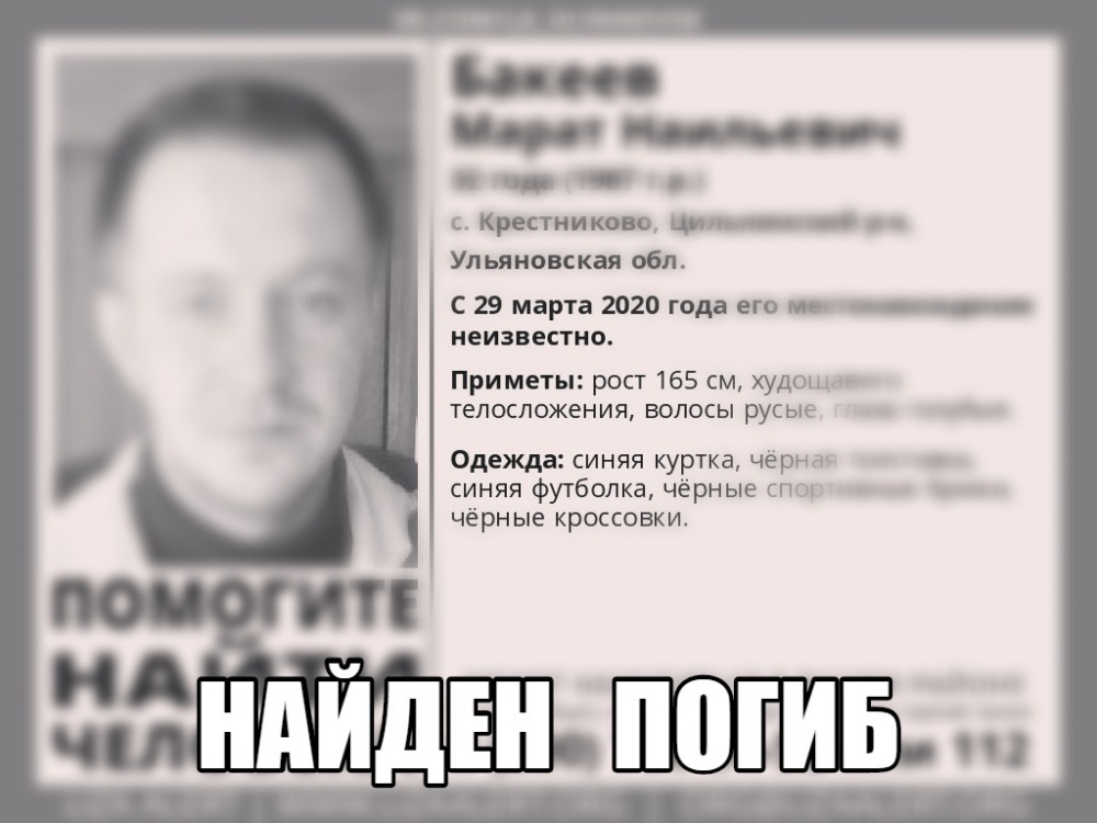 В селе Крестниково Ульяновской области 29 марта пропал 32-летний Марат Бакеев. Как сообщили в группе поискового отряда "Лиза Алерт", мужчина обнаружен, он погиб.