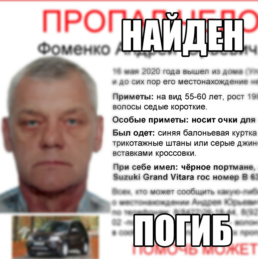 Портал 73онлайн писал, что 16 мая в Заволжском районе Ульяновска пропал 58-летний Андрей Фоменко. Он на своем автомобиле Suzuki уехал из дома и не вернулся. Как стало известно, мужчина погиб.