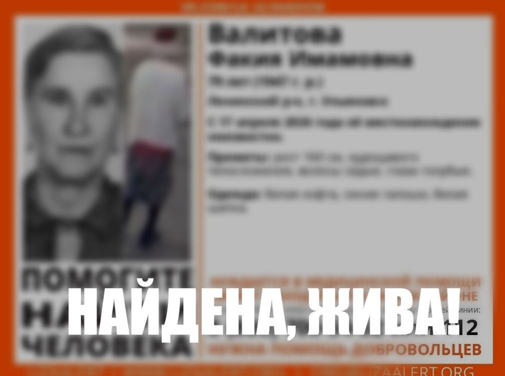 Ранее портал 73онлайн писал, что 17 апреля в Ленинском районе Ульяновска пропала 79-летняя местная жительница Факия Валитова. К счастью, она нашлась живой. Вот что рассказали в поисковом отряде: