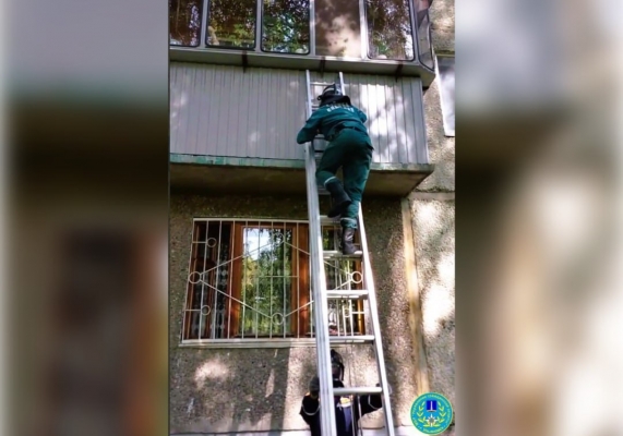 Прибывшие на место спасатели Управления в присутствии родственников при помощи трехколенной лестницы проникли в квартиру через окно третьего этажа.