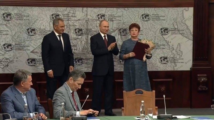 Президент России Владимир Путин вручил малую серебряную медаль председателю Ульяновского отделения Русского географического общества, ректору УлГПУ Тамаре Девяткиной.