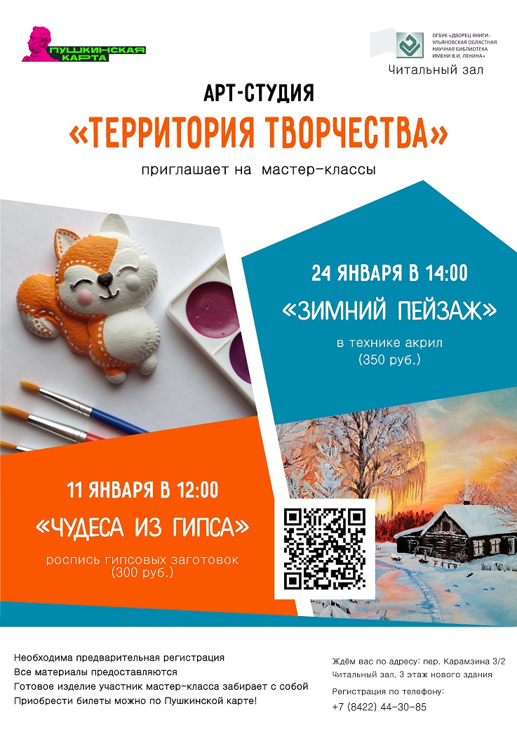Зима — волшебное время года, когда на улице ясная морозная погода, падает снег, все вокруг становится белым, кажется, что вы попали в сказку. Приглашаем всех на занятие по живописи, где каждый сможет создать неповторимую зимнюю картину — замечательное украшение для любого интерьера.