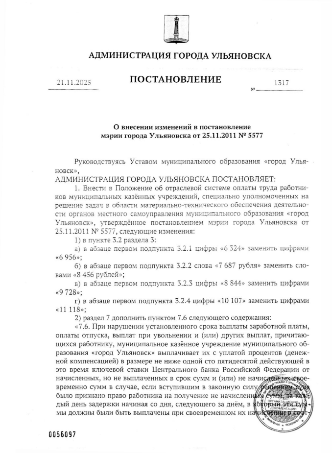 Повышение касается работников муниципальных казённых учреждений, специально уполномоченных на решение задач в области материально-технического обеспечения деятельности органов местного самоуправления.