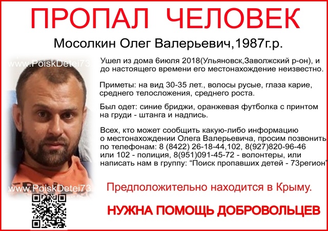 Мужчина был одет в оранжевую футболку с принтом штанги на груди, синие бриджи. Если вам что-либо известно о местонахождении мужчины, просят звонить по указанным в ориентировке телефонам.