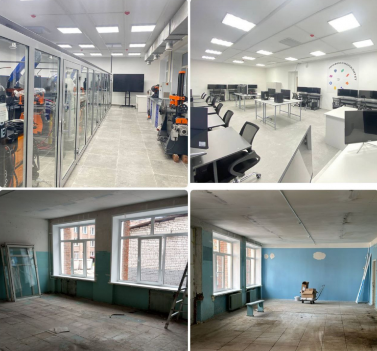 Так как готовят специалистов по разным направлениям, поэтому есть автошкола, ресурсный центр, «Кванториум». В 2024 году по проекту «Профессионалитет» помещения отремонтировали и закупили новое оборудование.