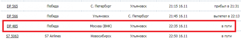 Рейс ДР 485 авиакомпании «Победа» является регулярным и летает из столичного аэропорта «Внуково» каждый день, кроме воскресенья. Обычно самолет вылетает в 20.00 и прибывает в Ульяновск в 22:35.