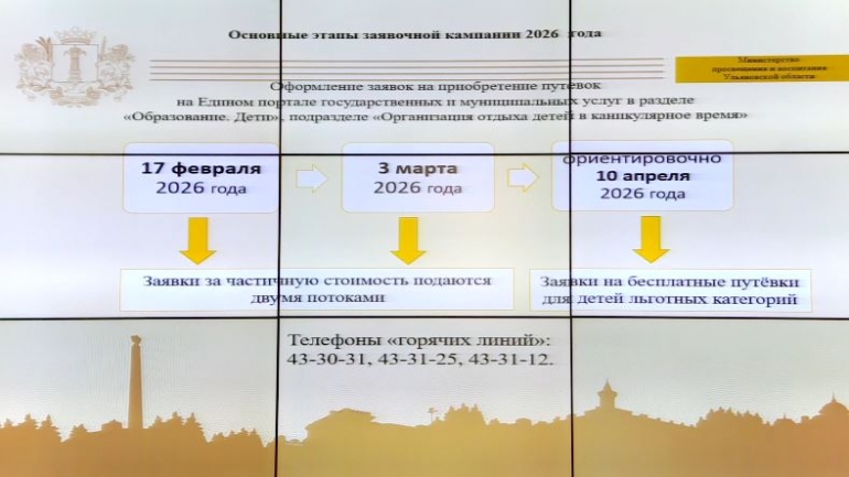 Первый поток стартует 17 февраля и предназначен для лагерей с наибольшей наполняемостью. Опыт показывает, что к таким лагерям относятся загородные лагеря «Волжанка» и «Смарт» в Чердаклинском районе и лагерь «Джем» в Ульяновском районе.