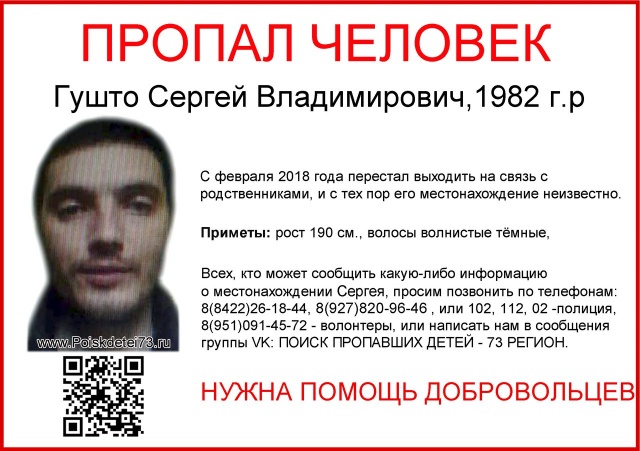 С февраля не выходит на связь с родственниками 35-летний Сергей Гушто. Ульяновцев просят помочь в розыске мужчины.
