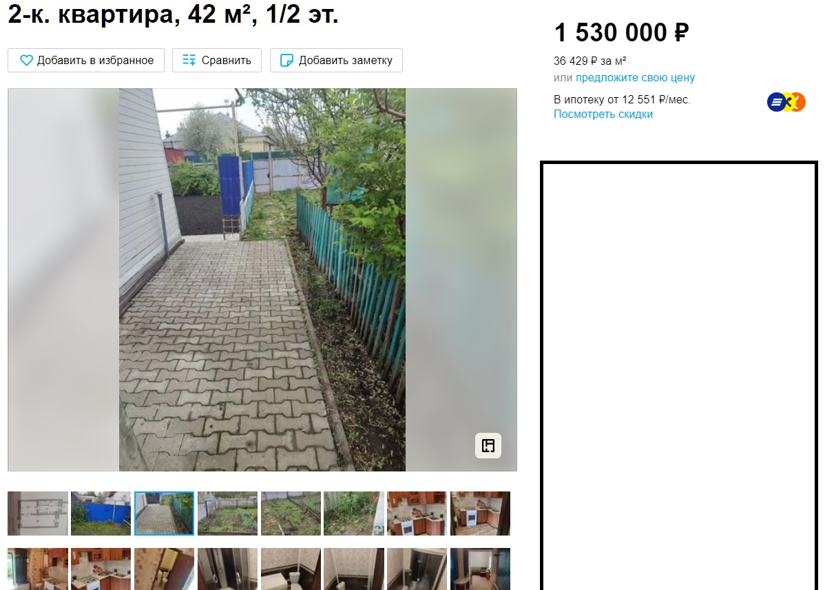 В Пригородном продают квартиры в небольших частных домах на несколько семей. Одно из таких объявлений: 42 квадрата, земельный участок, место для авто, под гараж и баню, а также возможность обустроить второй этаж на чердаке, и всё это за 1 530 000 руб.