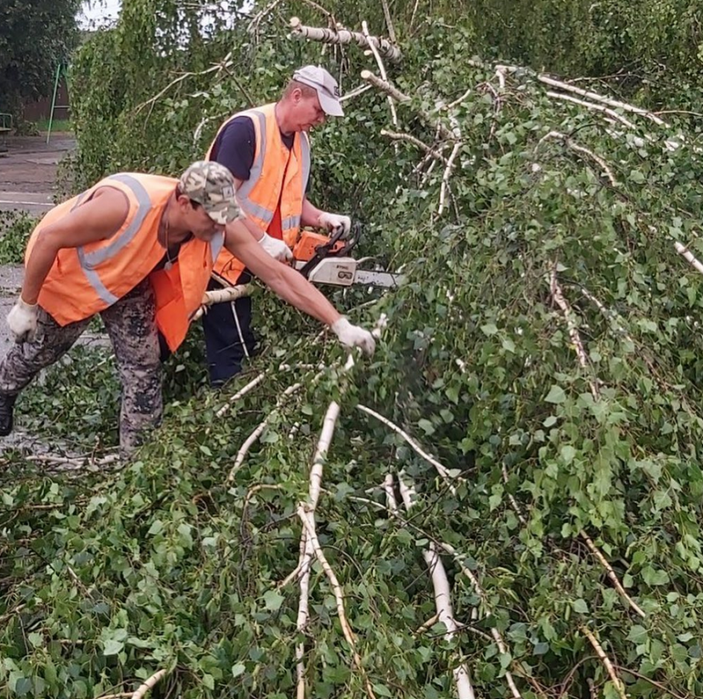 Сейчас в районе ведутся аварийно-восстановительные работы: порядка 70 специалистов занимаются ликвидацией последствий стихии, в том числе привлечены силы МЧС. Задействована 21 единица техники. Также восстанавливают электроэнергию, убирают поваленные деревья, расчищают дороги и придомовые территории.