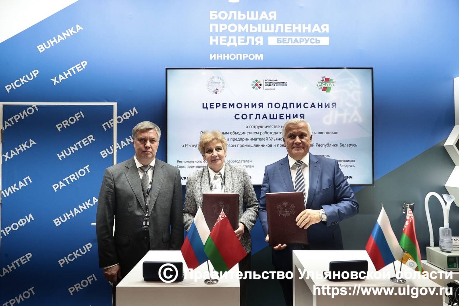 Губернатор Алекскй Русских сообщил о новых договорённостях. «Авиастар» и Минский авиаремонтный завод №407 заключили соглашение по кооперации в части компонентов для самолёта МС-21. Руководство Минского метрополитена и БелЖД заинтересовано в продукции ульяновской компании «Инжиниринг Сервис-Путьмаш». Она представила подбивочные блоки для путевых железнодорожных машин — полностью импортозамещённый продукт, ранее бывший австрийским. ПОЭЗ «Ульяновск» будет сотрудничать со свободными экономическими зонами «Гомель-Ратон» и «Минск» в части кооперации резидентов. С Республиканским союзом промышленников и предпринимателей достигнута договорённость о тесном сотрудничестве по продвижению продукции Ульяновской области на экспорт. Намечены новые рынки сбыта в Беларуси для Ульяновского станкостроительного завода. Идёт развитие предприятия фабрики «Полесье» (Беларусь) в Димитровграде.