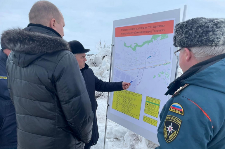 Губернатор Алексей Русских вчера, 24 февраля, проконтролировал ход противопаводковых работ в пригородном ульяновском посёлке Баратаевка.