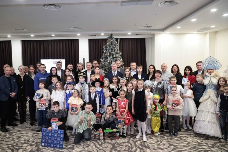 Губернатор Алексей Русских совместно с предпринимателями поздравил ребят и вручил им подарки.